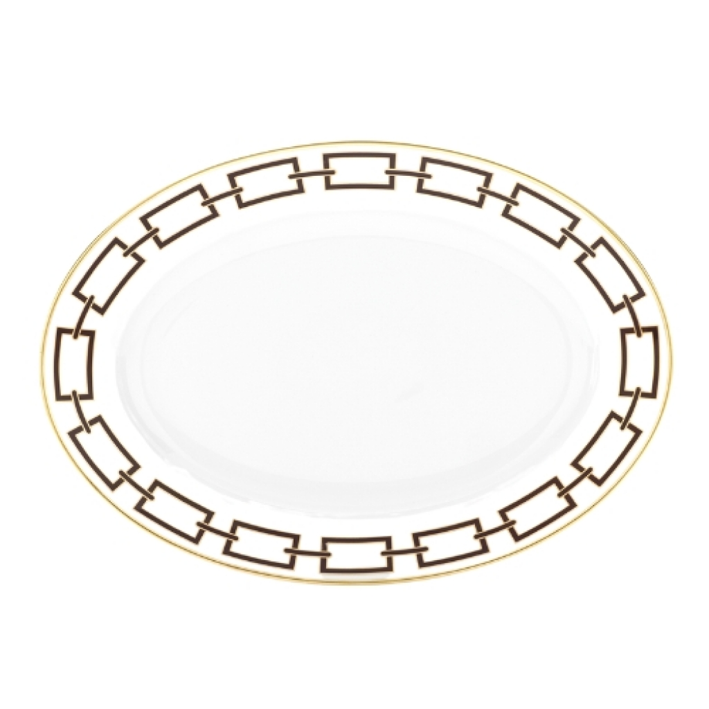 Ref: R01260-004-0565 0Travessa oval da Manufatura Richard Ginori, 34cm, colecao Impero, na decoracao *Catena Ebano*.