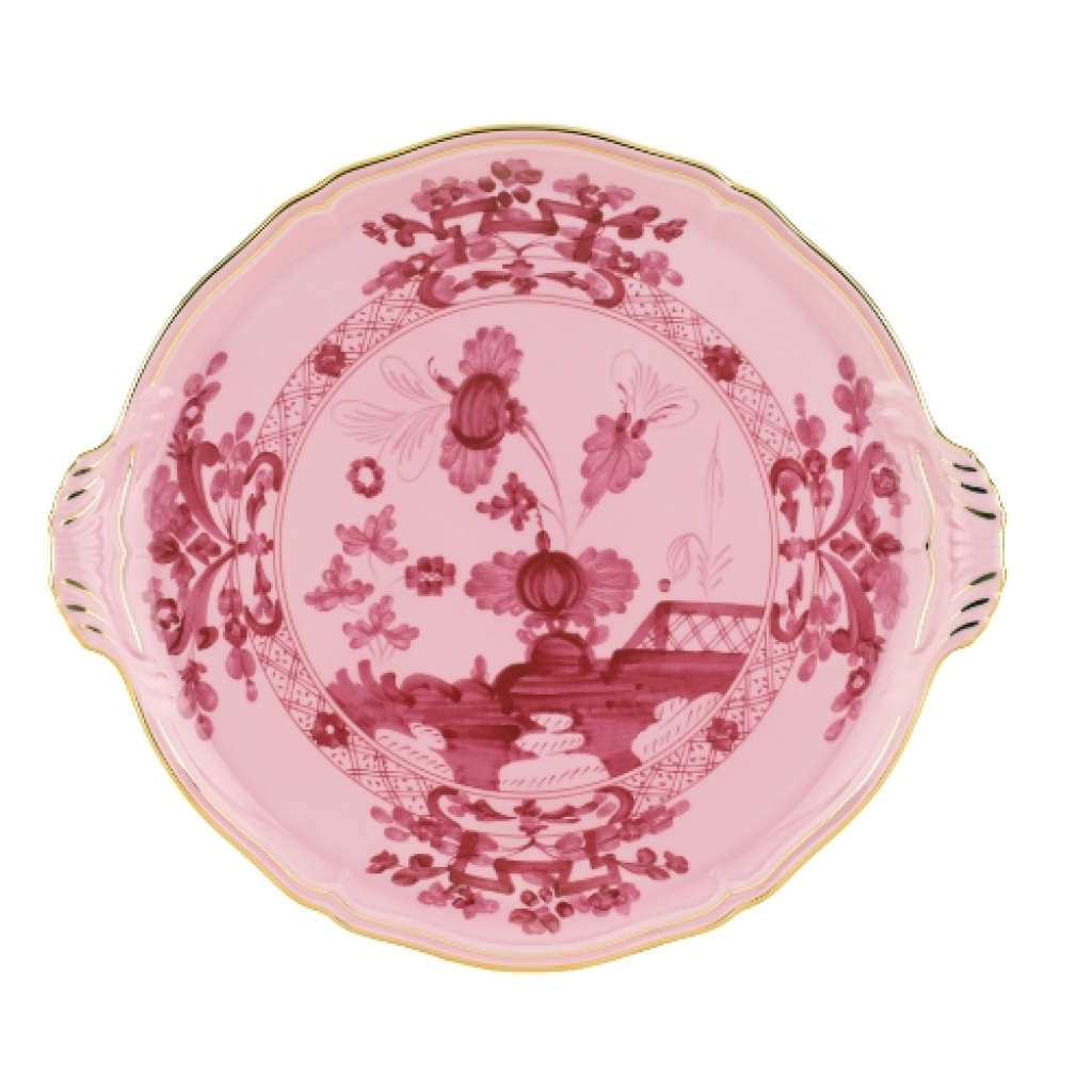 Ref: R01242-003-0305 0Prato para bolo c/ alcas da Manufatura Richard Ginori, colecao Antico Doccia, decoracao *Oriente Italiano Porpora*.