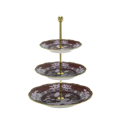 Ref: R01248-003-0526 0Etagere (porta doces) da Manufatura Richard Ginori, 3 niveis com 26,5cm.alt., colecao Antico Doccia, decoracao *Oriente Italiano Castagna*.