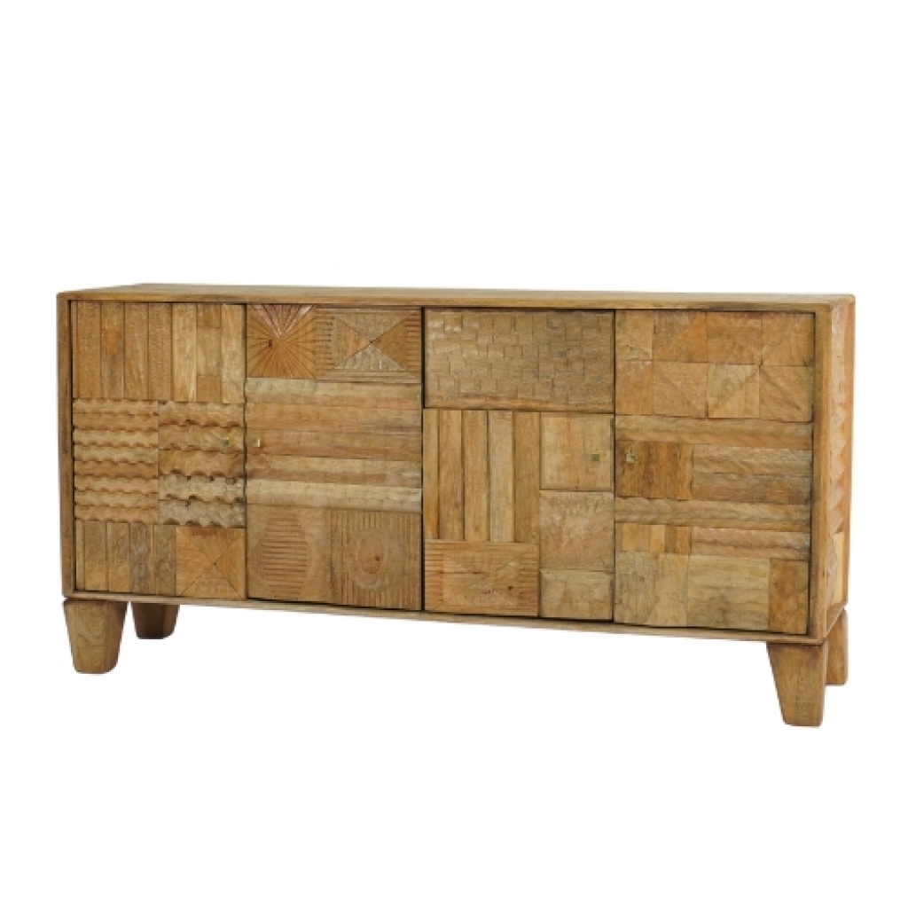 Ref: M26301-6670-810 0Buffet de madeira com 4 portas, intitulado *Ladrilho*, com design que lembram varios azulejos esculpidos, na cor bege natural.