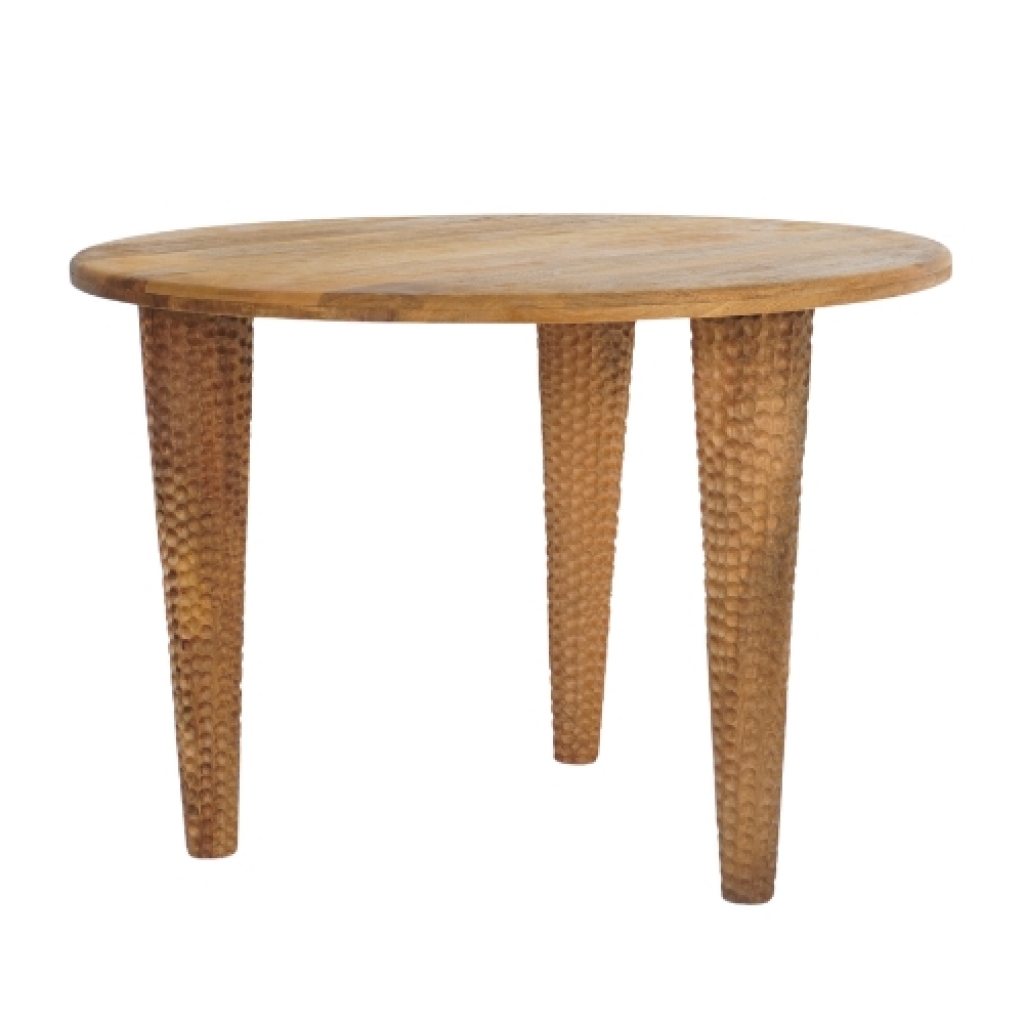 Ref: M26305-4310-810 0Mesa hall de madeira, intitulado *Fore* que significa criar cavidades ou entalhes em uma superfície, em referencia ao seu design com acabamento martelado nos pés, na cor natural.