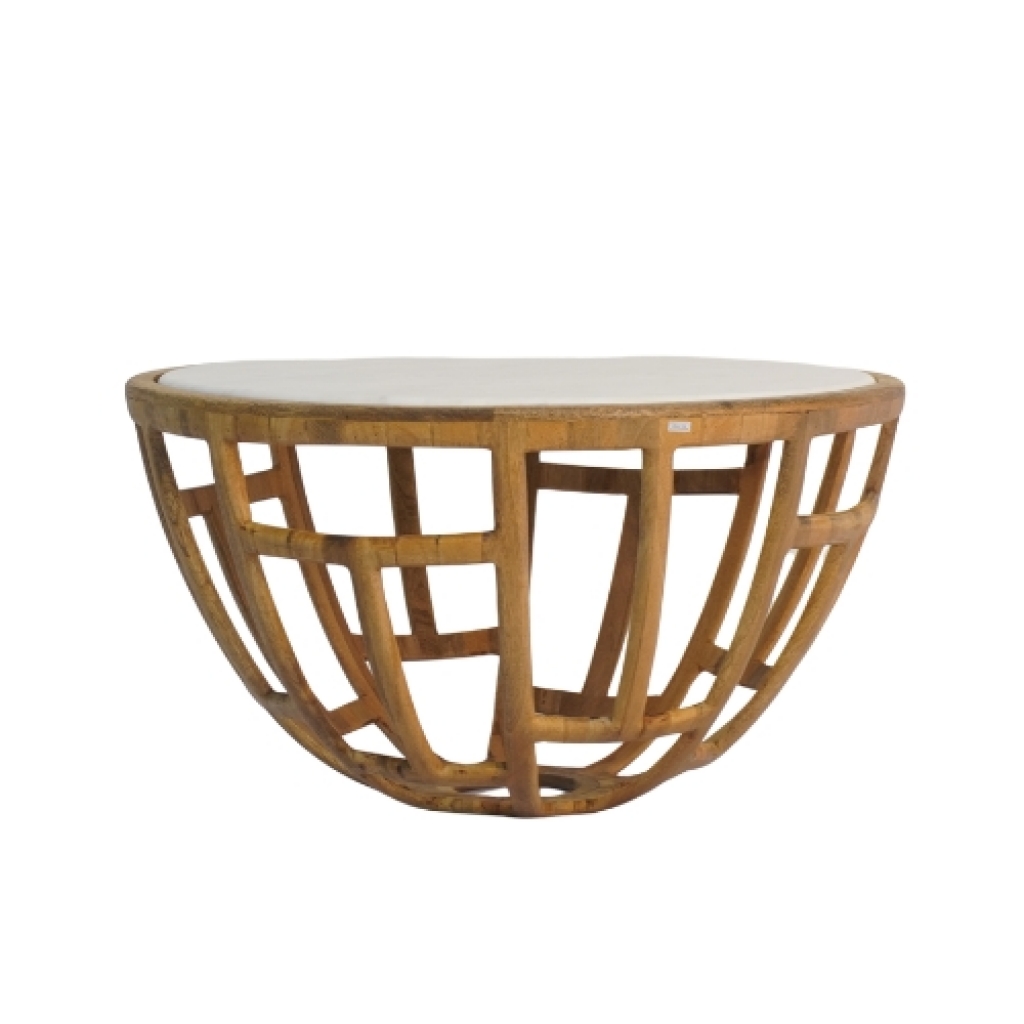 Ref: M26311-2200-801 0Mesa de centro de madeira e tampo de marmore branco, intitulado*Alveolo*, sua composicao precisa e seu design com estruturas finas e delicadas, remetem aos filamentos e compartimentos geometricos dos alveolos naturais.