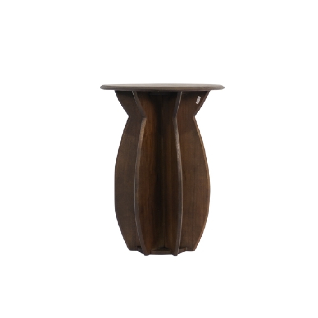 Ref: M26312-1101-228 0Mesa lateral de madeira, intitulado*Contour* que significa contorno, remete ao seu design esculpido de formas arredondadas e continuas e linhas suaves circundando a base, na cor marrom.
