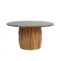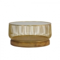 Cód.M26303-2200-811 Mesa de centro com base de madeira, em detalhe de camadas sobrepostas e tampo de... 79cm.diam.X49cm.alt. +Veja mais detalhes