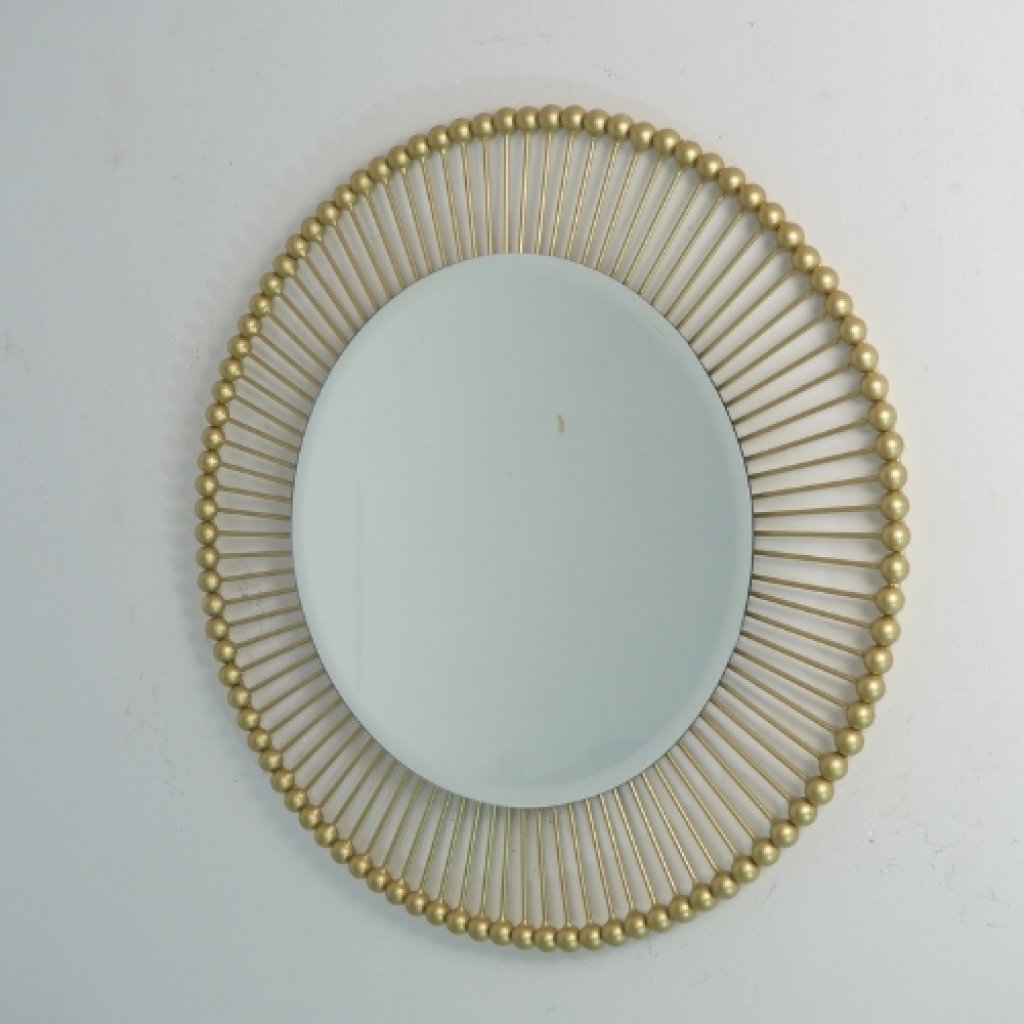 Ref: O26200-1190-330 0Espelho redondo com moldura de ferro forjado, intitulado *Iron Wire* que significa fio de ferro, com design de bola e vidro chanfrado, na cor dourado banhado.