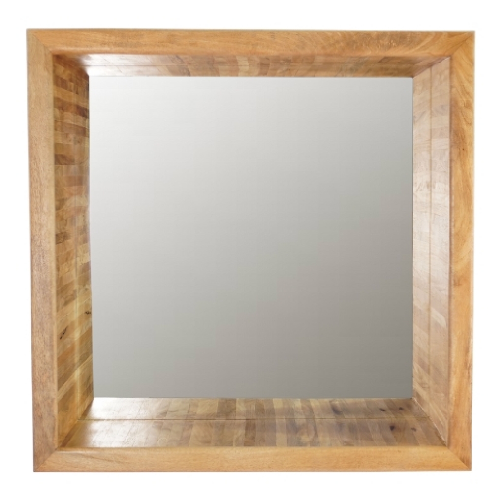Ref: O26309-3380-810 0Espelho quadrado com moldura de madeira chanfrada profunda, intitulado *Sunburst*, esse tipo de marchetaria lembra o efeito visual de raios de sol explodindo para fora, na cor natural.