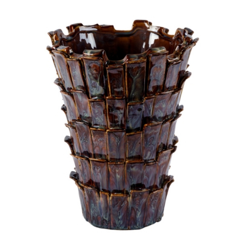 Ref: C30A05-880-1186 0Grande vaso de ceramica em camadas, da colecao Baja California. Intitulado *Cardon Iris*, inspirado no maior cacto do mundo, simbolo visual forte da paisagem desertica da peninsula com seu efeito iridescente, que reflete as ondas do mar.