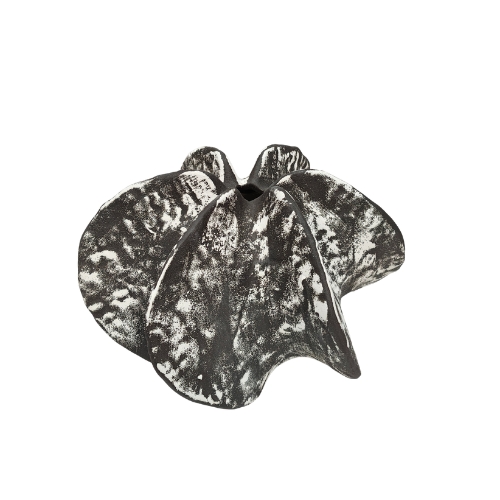 Ref: C10A05-100-1263 0Vaso de ceramica de formato torcido irregular, da colecao Baja California. Intitulado *Vortice*, em referencia a forca dos ventos e redemoinhos presentes na regiao, com tons em preto e branco.