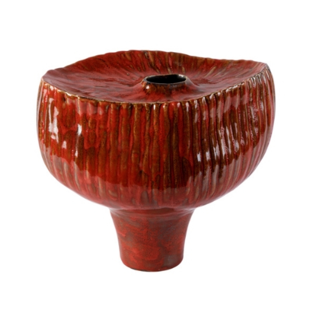 Ref: C10A05-400-1264 0Vaso de ceramica com base de formato que lembra taca, com textura da colecao Baja California. Homenageia Bahia *Magdalena*, conhecida por sua riqueza marinha e barcos pesqueiros, sua tonalidade vermelha lembra o por do sol refletido na agua da baia.