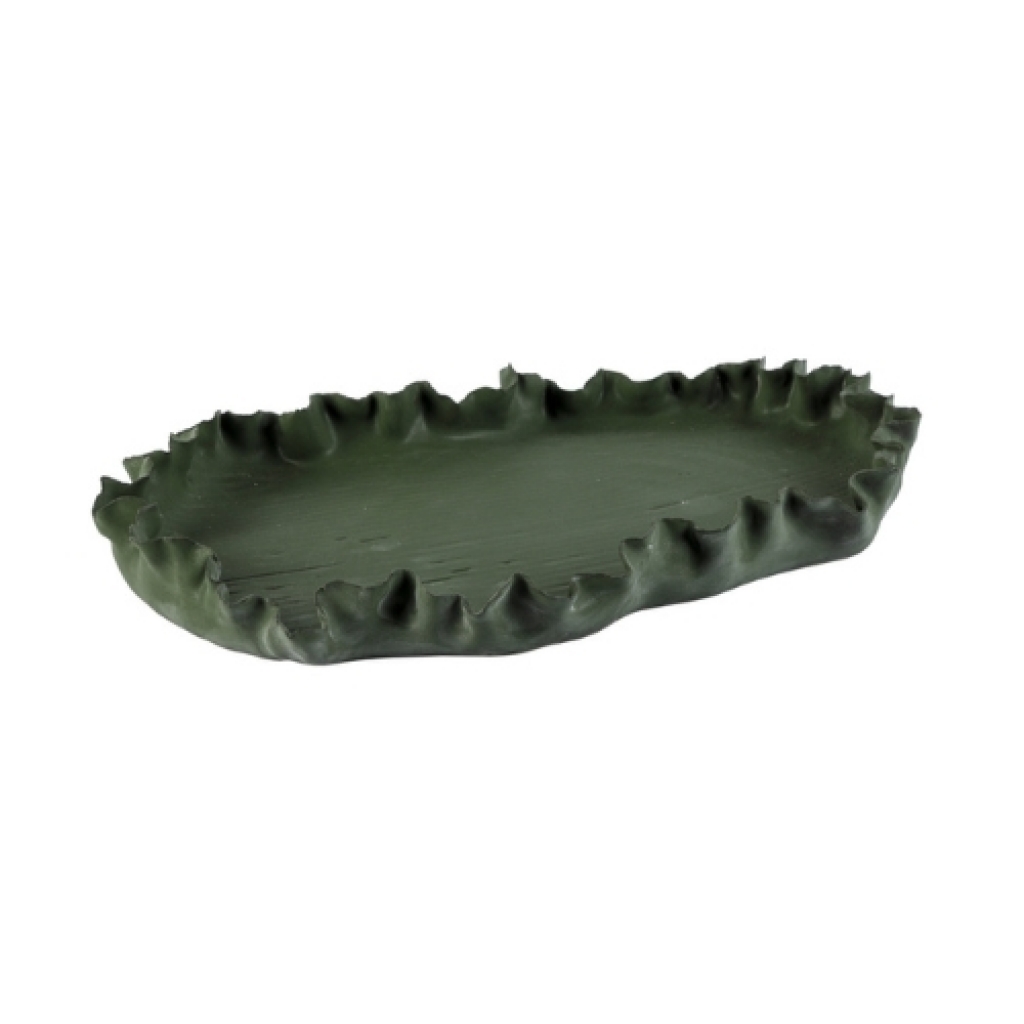 Ref: C10A05-600-6049 0Centro de mesa ou bandeja de ceramica de formato oval, da colecao Baja California. Intitulado *El Mogote*, uma peninsula de areia e vegetacao que se projeta no mar em frente a La Paz, referenciando a suas praias, dunas e mangues.