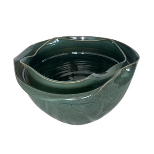 Ref: C47A05-660-1280 0Cachepot de ceramica, possui formato de bordas onduladas e camadas que lembram a sobreposicao de petalas abertas, intitulado *Lotus* sendo um dos simbolos mais fortes da cultura chinesa, colecao Essencia do Oriente na cor verde e acabamento brilhoso.