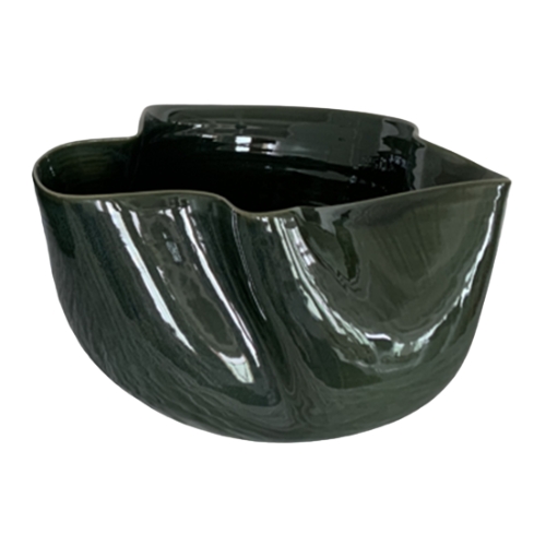 Ref: C47A05-660-1283 0Cachepot de ceramica, com formato de bordas onduladas e curvas que lembram ondas das aguas, intitulado *Chang* em homenagem ao rio Changjiang, que é o “Rio Longo”, o maior da China, colecao Essencia do Oriente na cor verde e acabamento brilhoso.