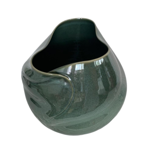 Ref: C47A05-660-1288 0Vaso bojudo 2 de ceramica, com formato arredondado e curvas suaves, intitulado *Gaoling* em homenagem a montanha proxima de Jingdezhen, de onde “nasce” a ceramica, colecao Essencia do Oriente na cor verde e acabamento brilhoso.