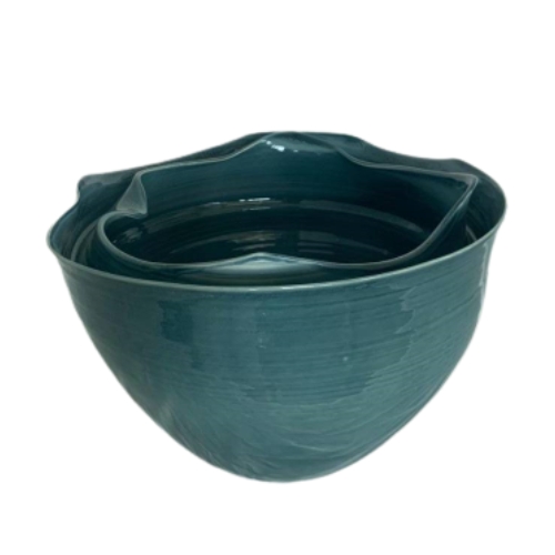 Ref: C47A05-770-1280 0Cachepot de ceramica, possui formato de bordas onduladas e camadas que lembram a sobreposicao de petalas abertas, intitulado *Lotus* sendo um dos simbolos mais fortes da cultura chinesa, colecao Essencia do Oriente na cor azul e acabamento brilhoso.