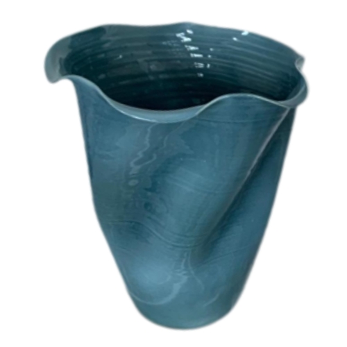 Ref: C47A05-770-1285 0Grande vaso de ceramica, com formato de bordas onduladas e curvas que lembram ondas das aguas, intitulado *Chang* em homenagem ao rio Changjiang, que é o “Rio Longo”, o maior da China, colecao Essencia do Oriente na cor azul e acabamento brilhoso.