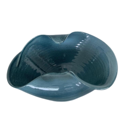 Ref: C47A05-770-1286 0Centro de mesa de ceramica, com formato de bordas onduladas e curvas que lembram ondas das aguas, intitulado *Chang* em homenagem ao rio Changjiang, que é o “Rio Longo”, o maior da China, colecao Essencia do Oriente na cor azul e acabamento brilhoso