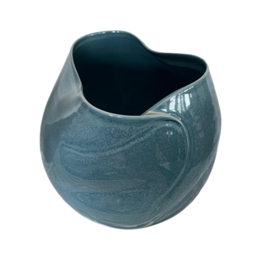 Ref: C47A05-770-1288 0Vaso bojudo 2 de ceramica, com formato arredondado e curvas suaves, intitulado *Gaoling* em homenagem a montanha proxima de Jingdezhen, de onde “nasce” a ceramica, colecao Essencia do Oriente na cor azul e acabamento brilhoso.