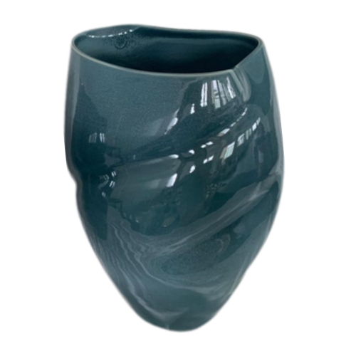Ref: C47A05-770-1289 0Grande vaso de ceramica, com formato arredondado e curvas suaves, intitulado *Gaoling* em homenagem a montanha proxima de Jingdezhen, de onde “nasce” a ceramica, colecao Essencia do Oriente na cor azul e acabamento brilhoso.