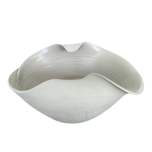 Ref: C48A05-001-1286 0Centro de mesa de ceramica, com formato de bordas onduladas e curvas que lembram ondas das aguas, intitulado *Chang* em homenagem ao rio Changjiang, que é o “Rio Longo”, o maior da China, colecao Essencia do Oriente na cor branca e acabamento fosco