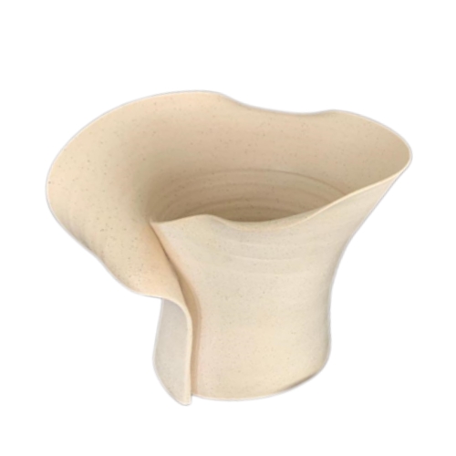 Ref: C48A05-001-1291 0Vaso de ceramica, com formato arredondado e detalhe sobreposto como se fosse folha, intitulado *Yaoli* em homenagem a vila historica da regiao de Jingdezhen, famosa por seus fornos antigos e paisagem montanhosa, na cor branca e acabamento fosco.