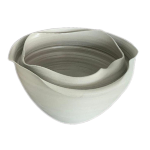 Ref: C48A05-220-1280 0Cachepot de ceramica, possui formato de bordas onduladas e camadas que lembram a sobreposicao de petalas abertas, intitulado *Lotus* sendo um dos simbolos mais fortes da cultura chinesa, colecao Essencia do Oriente na cor cinza e acabamento fosco.