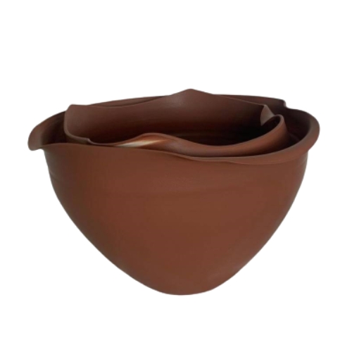 Ref: C48A05-558-1280 0Cachepot de ceramica, possui formato de bordas onduladas e camadas que lembram a sobreposicao de petalas abertas, intitulado *Lotus* sendo um dos simbolos mais fortes da cultura chinesa, colecao Essencia do Oriente na cor terracota e acabamento fosco