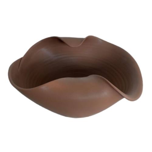 Ref: C48A05-558-1286 0Centro de mesa de ceramica, com formato de bordas onduladas e curvas que lembram ondas das aguas, intitulado *Chang* em homenagem ao rio Changjiang, que é o “Rio Longo”, o maior da China, colecao Essencia do Oriente na cor terracota fosco.