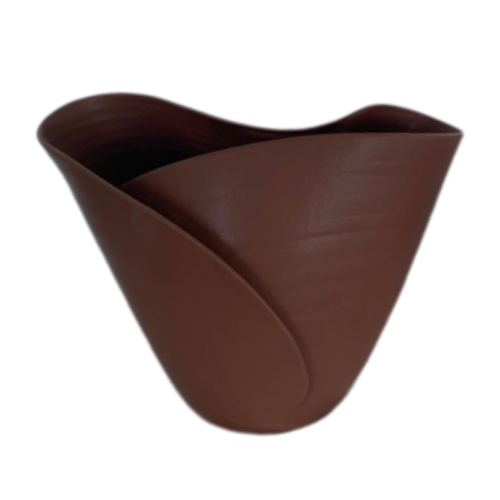Ref: C48A05-558-1290 0Vaso de ceramica, com formato arredondado e detalhe sobreposto como se fosse folha, intitulado *Yaoli* em homenagem a vila historica da regiao de Jingdezhen, famosa por seus fornos antigos e paisagem montanhosa, na cor terracota e acabamento fosco.