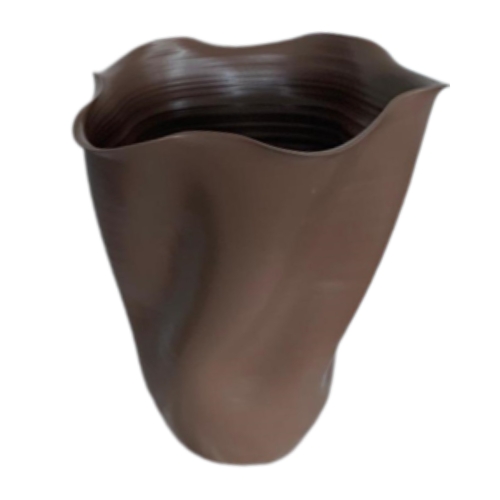 Ref: C48A05-880-1285 0Grande vaso de ceramica, com formato de bordas onduladas e curvas que lembram ondas das aguas, intitulado *Chang* em homenagem ao rio Changjiang, que é o “Rio Longo”, o maior da China, colecao Essencia do Oriente na cor marrom e acabamento fosco.