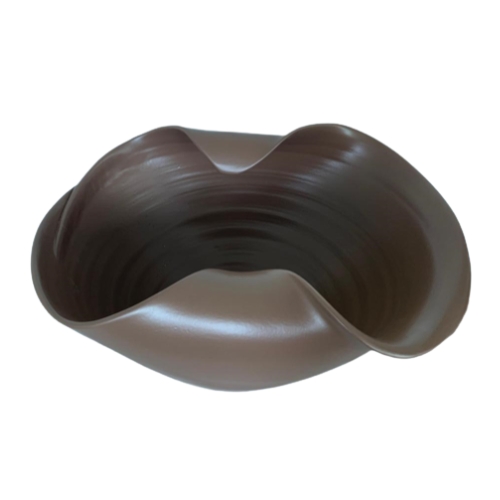 Ref: C48A05-880-1286 0Centro de mesa de ceramica, com formato de bordas onduladas e curvas que lembram ondas das aguas, intitulado *Chang* em homenagem ao rio Changjiang, que é o “Rio Longo”, o maior da China, colecao Essencia do Oriente na cor marrom e acabamento fosco.