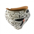 Vaso de ceramica, com formato de bordas onduladas e curvas que lembram ondas das...