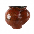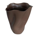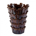 Vaso de Ceramica, com base e borda estreitas c/ aspecto cascata na cor marrom...