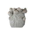 Vaso de ceramica, com formato arredondado e detalhe sobreposto como se fosse fol...