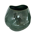 Vaso baixo estilo cachepot, de forma simetrica com detalhes de abas ao redor sup...