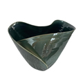 Cachepot de ceramica, com formato de bordas onduladas e curvas que lembram ondas...