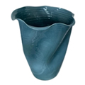 Grande vaso de ceramica, com formato de bordas onduladas e curvas que lembram on...