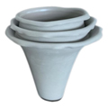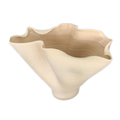 Grande vaso de ceramica, possui formato de bordas onduladas e camadas que lembra...