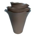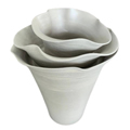 Cachepot de ceramica, possui formato de bordas onduladas e camadas que lembram a...