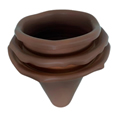 Vaso de ceramica, possui formato de bordas onduladas e camadas que lembram a sob...