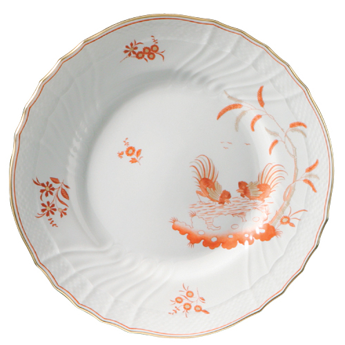 Ref: R01502-002-0075 0Prato para sobremesa, da Manufatura Richard Ginori , colecao Vecchio Ginori, decoracao Gali Rossi, com flores na cor laranja e finas linhas em ouro.