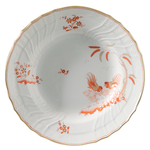 Ref: R01502-002-0180 0Prato para massa da Manufatura Richard Ginori , decoracao Gali Rossi, com flores na cor laranja e finas linhas em ouro.