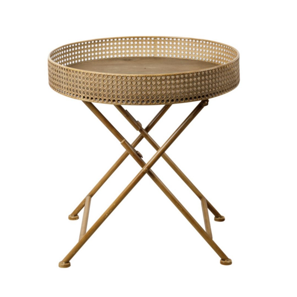 Ref: M12201-1182-389 0Mesa lateral ou Auxiliar, com o tampo no formato redondo a maneira de Bandeja, como se fosse de Palhinha, por isso intitulada *Faux Palhinha* sobre base de metal que dobra.