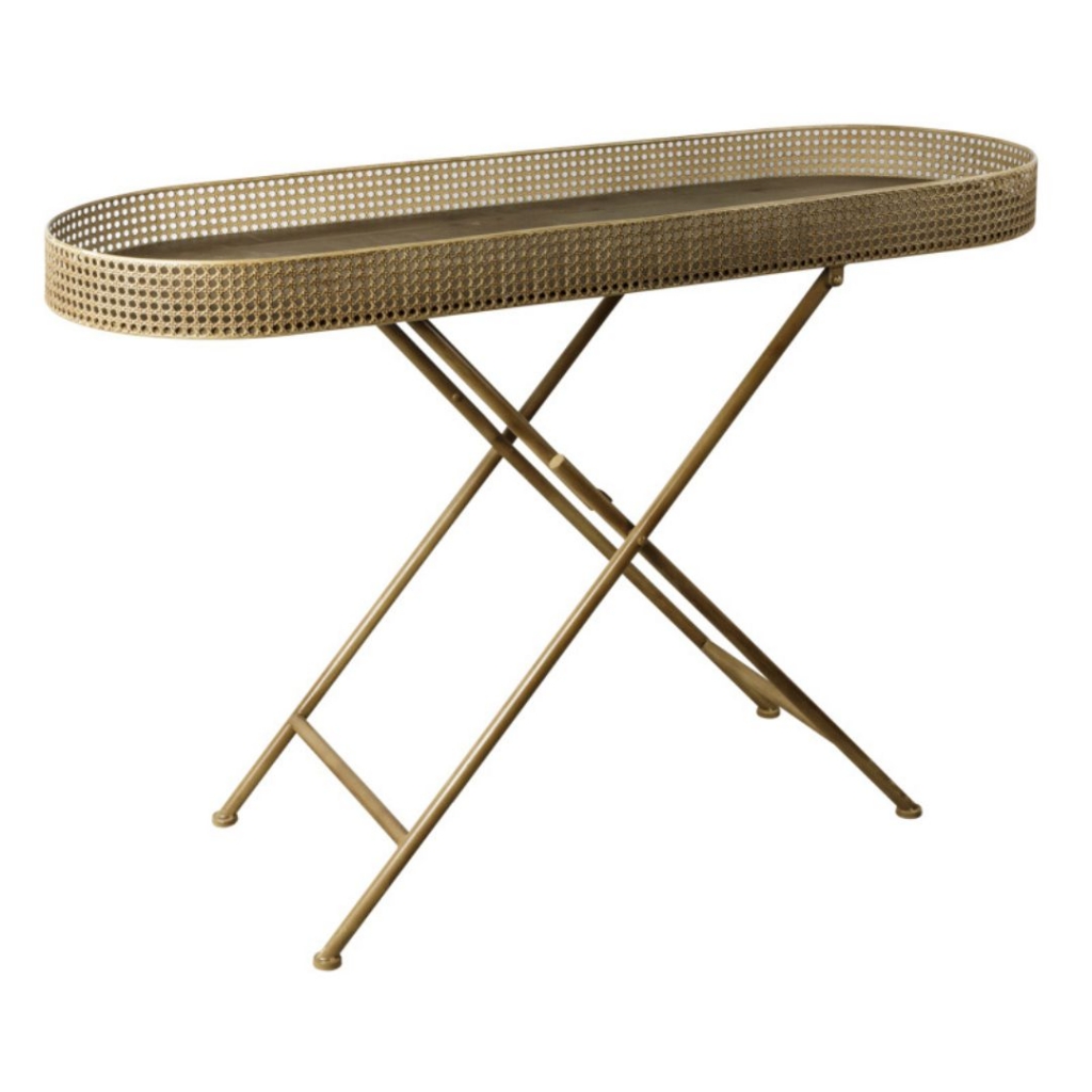 Ref: M12201-1185-389 0Aparador, ou Mesa Auxiliar, sobre base de metal que dobra , como se fosse de Palhinha, por isso intitulada *Faux Palhinha*com tampo a maneira de Bandeja , no formato Oval.