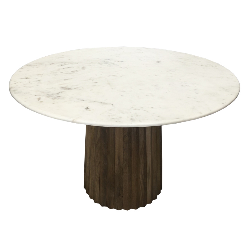 Ref: M12231-3645-800 0Grande Mesa Hall intitulada *Plisse* com marcheterie 3D seguindo design espanhol em madeira natural e tampo de marmore