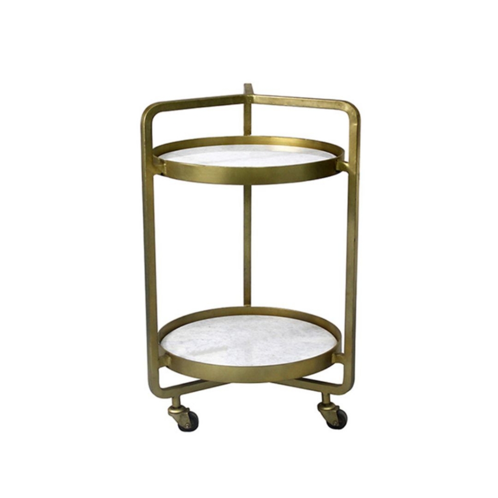 Ref: M30250-1568-300 0Carrinho de Cha de metal, com prateleira e tampo de marmore branco, no formato redondo.