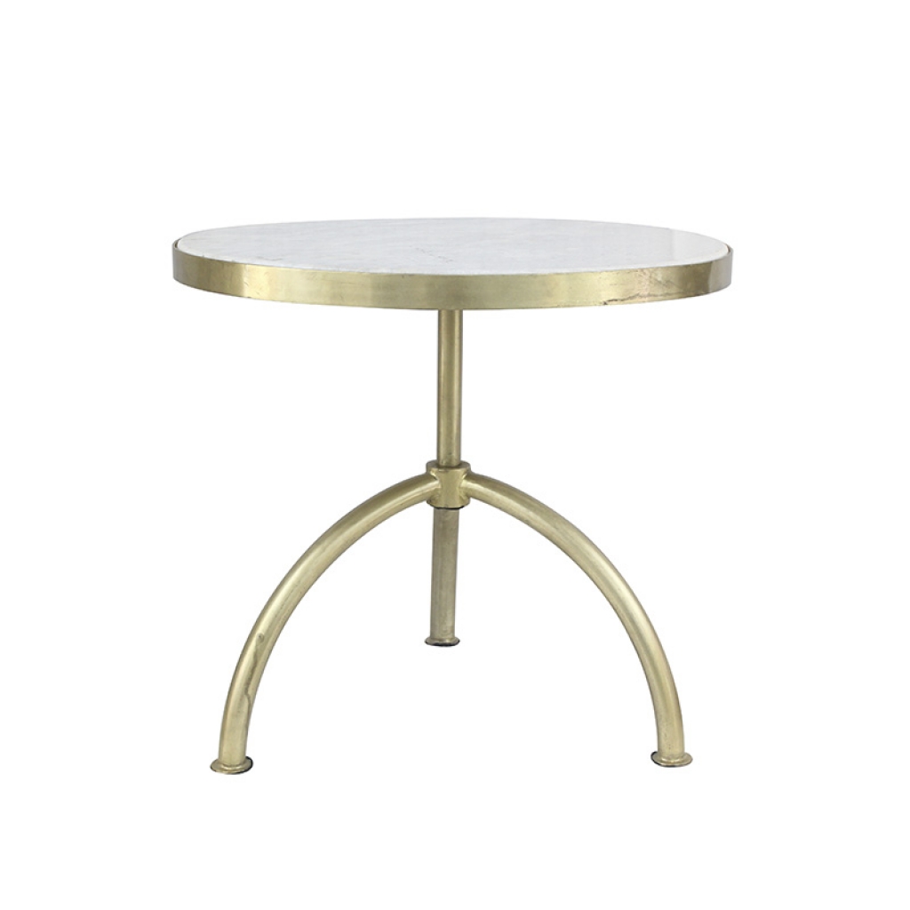 Ref: 93171 0Mesa para hall, com estrutura de metal e pes em *Arco* que se unem em suporte central e tempo de marmore branco.