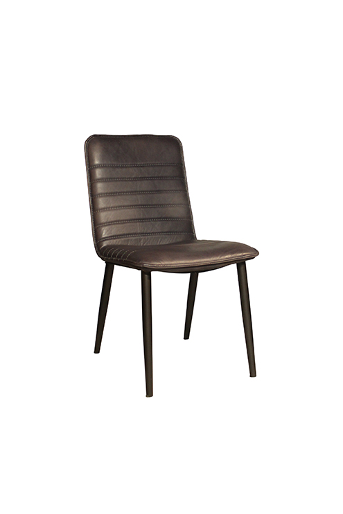 Ref: 95118 0Cadeira de jantar de couro cinza, com estrutura metalica.