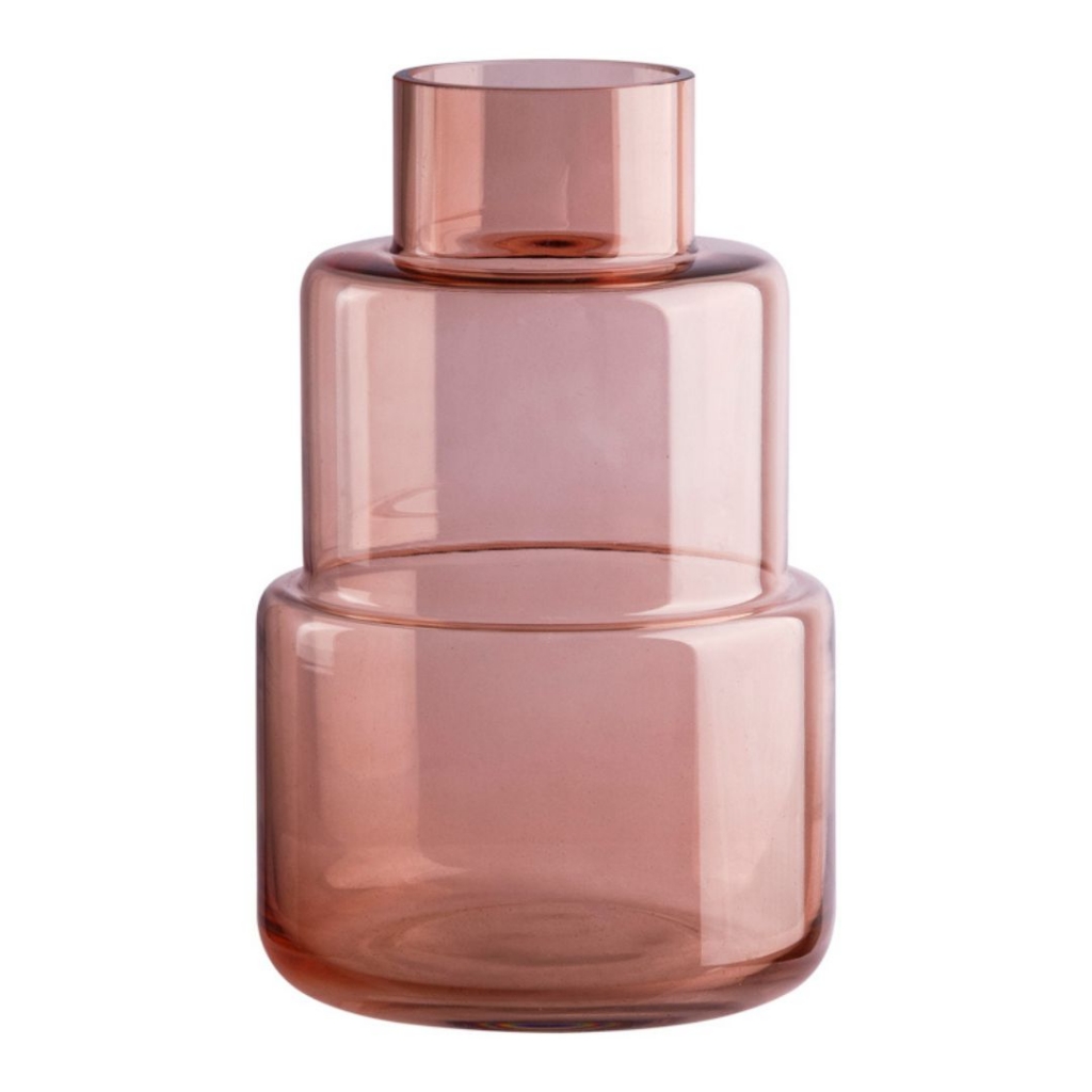 Ref: K14A01-400-1001 0Vaso de vidro soprado a mão com 3 niveis na cor Rose, intitulado *Step Pols*.