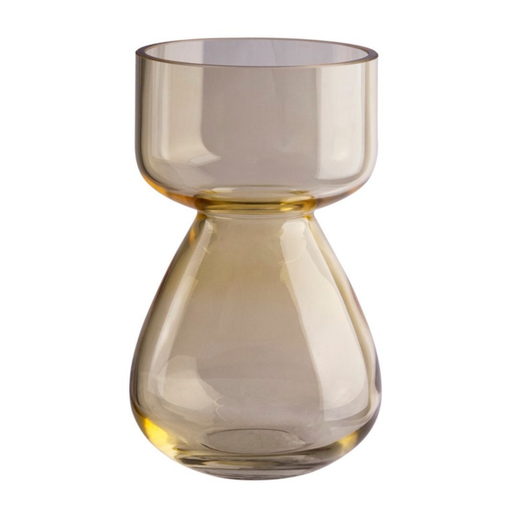 Ref: K15A01-500-1002 0Vaso de vidro soprado a mão com a base mais bojuda na cor Ambar, intitulado *AM-POLS*.