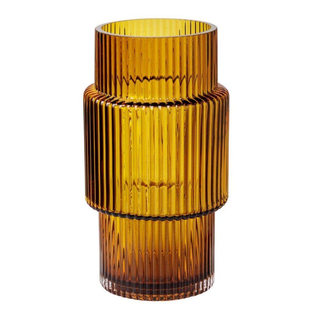Ref: K15A01-500-1014 VasoVASO DE VIDRO AMBAR C/BASE E BORDAS ESTREITAS ESTRIADO